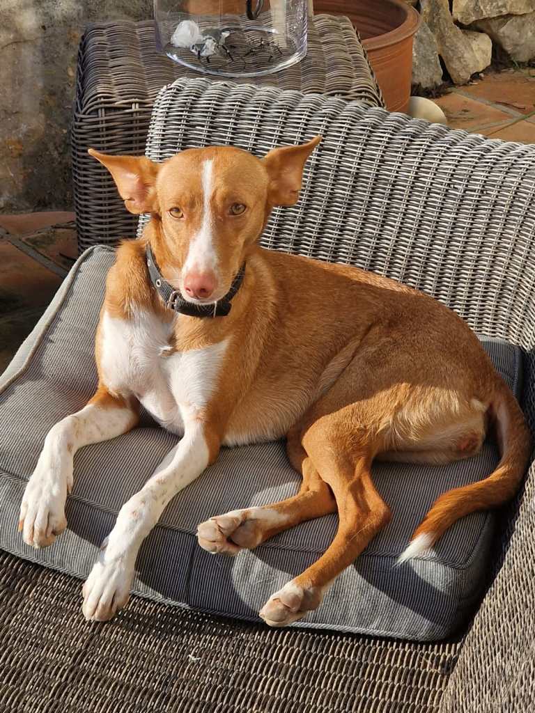 This is Lady, a very elegant ant gentle podenko. She has got a pink nose, she is very soft and careful in approaching people. She was abandoned by hunters who have used her as a tool for chasing prey in the woods. She was found hungry and desperate for shelter wondering on the roads near the small town. She was found by a good soul who brought her to AnimalNirvana. She will never be without shelter, though she is a champion in finding holes in the fence for wondering a bit but she will always return to her safe haven.